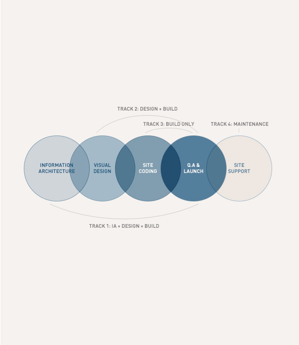 User profiles, interactive sitemaps, detailed wireframes, visual design, partials-based templating, multi-config environments, SEO optimization, site launch, and maintenance & support are all part of our process. These components make up the distinct tracks we offer, each designed to fit your specific project scope. And each track is managed with disciplined project management and clear and transparent communication.